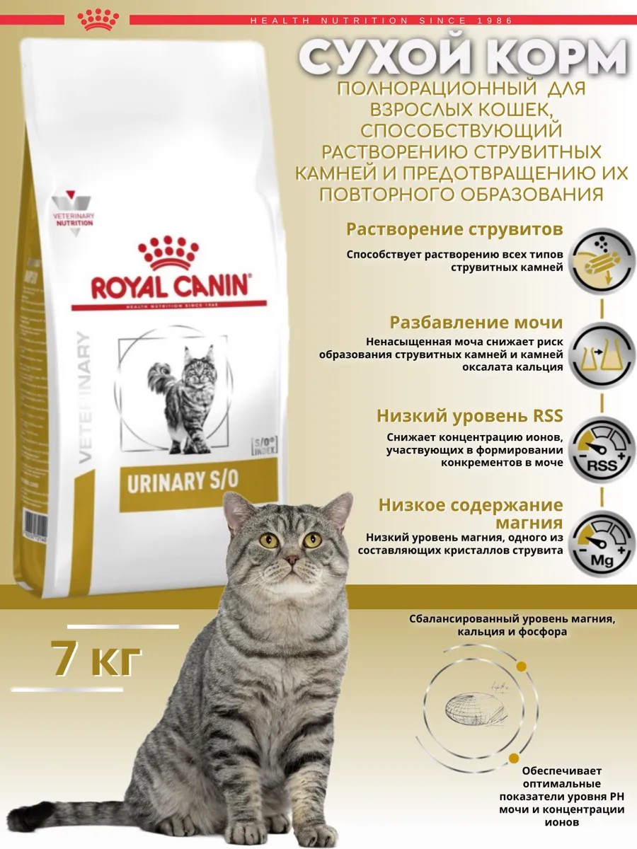 РЕКОМЕНДАЦИИ. Перед началом диетотерапии проконсультируйтесь с ветеринарным врачом. Струвитные камни растворяются при применении диеты Urinary S/O в течение 5–12 недель. Для предупреждения рецидивов уролитиаза курс лечения следует продолжать еще не менее 6 месяцев. По истечении этого времени необходимо повторное общее обследование, чтобы определить целесообразность диетотерапии на протяжении всей жизни кошки. Убедитесь, что кошке всегда доступна чистая свежая вода.