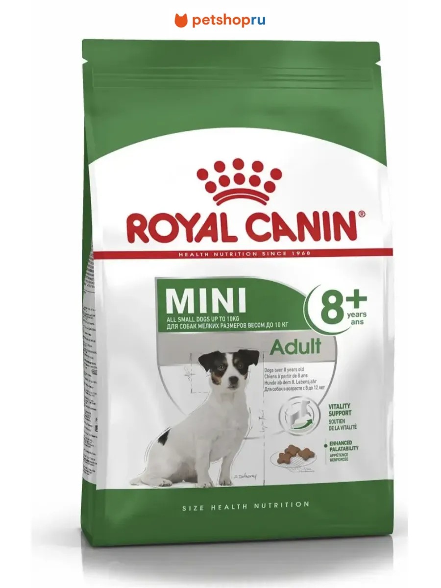 Полнорационный сухой корм подходит собакам мелких размеров (вес взрослой собаки менее 10 кг) в возрасте с 8 до 12 лет.