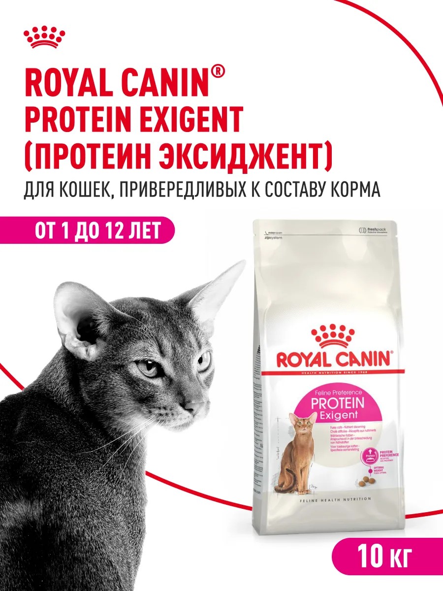 Корм сухой полнорационный для привередливых взрослых кошек в возрасте старше 1 года Canin Protein Exigent (Протеин Экзиджент) Royal Canin, подходящий для кошек, особенно привередливых к составу продукта, в возрасте от 1 года до 12 лет, специально разработан с учетом потребностей вашей кошки в питательных веществах.