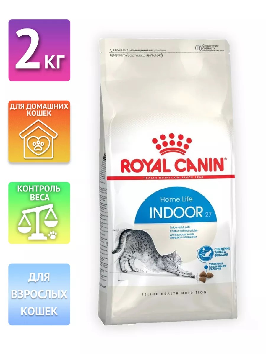 Рацион ROYAL CANIN Indoor 27 (Индор 27) учитывает особые потребности взрослых кошек и помогает: поддерживать оптимальное пищеварение и снижает запах стула; поддерживать оптимальный вес; снижать риск образования волосяных комочков; поддерживать гигиену ротовой полости; 100% полнорационное и сбалансированное питание.