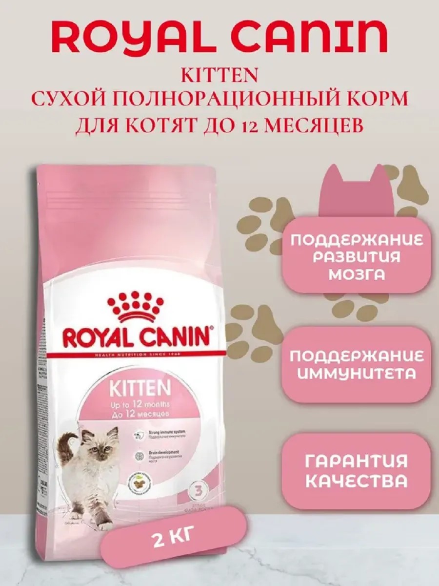 Royal canin Корм сухой для котят в период второй фазы роста до 12 месяцев Kitten 2кг