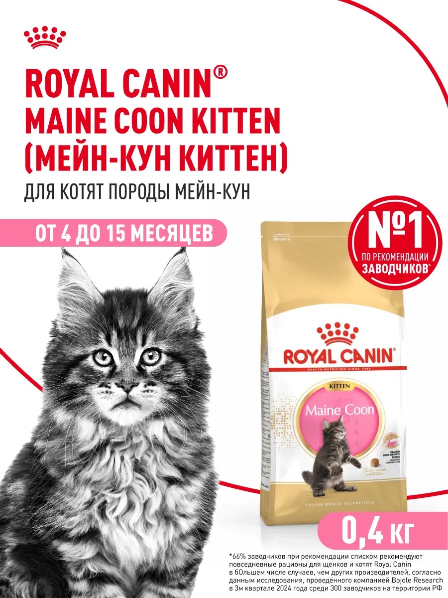 Корм сухой полнорационный сбалансированный для кошек - Специально для котят породы Мэйн Кун (в возрасте до 15 месяцев) MAINE COON KITTEN (МЕЙН КУН КИТТЕН) ROYAL CANIN, подходящий для котят породы мэйн кун в возрасте от 4 до 15 месяцев, специально разработан с учетом потребностей вашего котенка в питательных веществах в период роста.