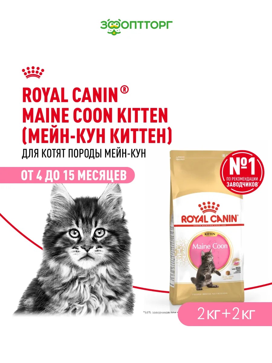 | Комплектация | Royal Canin Maine Coon Kitten для котят породы мейн-кун Птица, 2 кг. упаковка 2 шт |