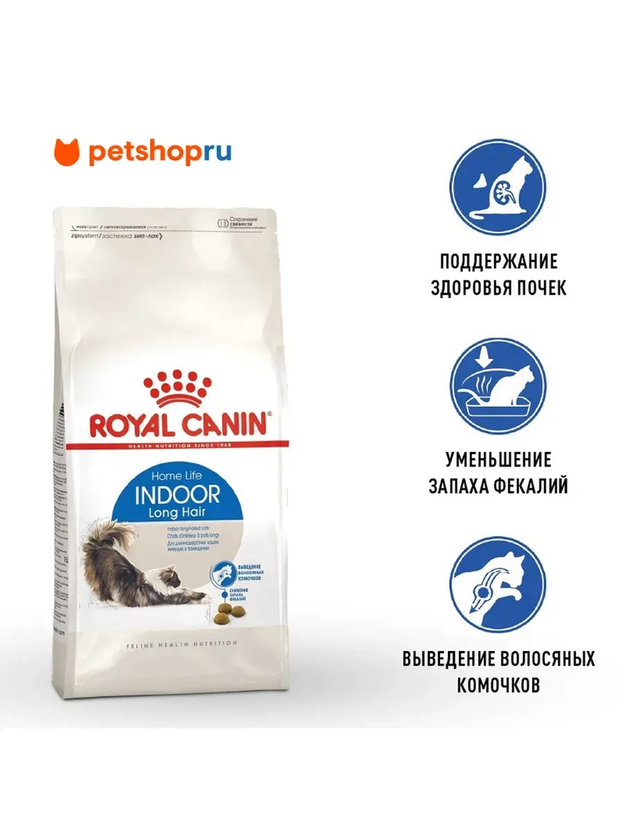Royal Canin Indoor Long Hair - сухой полнорационный сбалансированный корм для взрослых длинношерстных кошек (в возрасте от 1 года до 7 лет), постоянно живущих дома, и имеющих длинную шерсть.