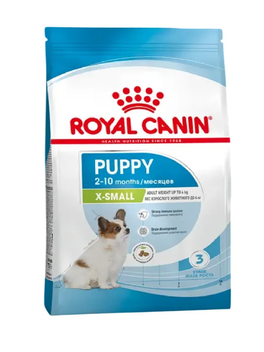 Royal canin, Сухой корм для щенков миниатюрных пород, 500 гр. Полнорационный сухой корм для щенков в возрасте до 10 месяцев. Продукт X-SMALL Puppy – это адаптированное диетологическое решение для щенков миниатюрных пород (вес взрослой собаки не более 4 кг). Благодаря достаточно высокой калорийности, специализированному комплексу антиоксидантов и пребиотикам в составе клетчатки, X-SMALL Puppy поддерживает гармоничный рост щенка вплоть до его завершения. Фаза роста – ключевой период в формировании иммунитета щенка. На этом этапе иммунная система щенка развивается постепенно. Корм X-SMALL PUPPY способствует формированию естественных механизмов защиты щенка благодаря комплексу антиоксидантов, в том числе витамина Е.