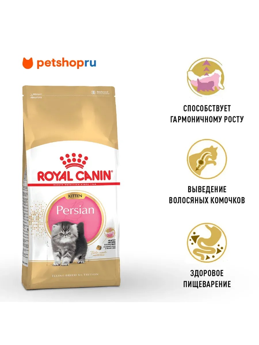 Stimulates the development of the kitten's immune system. Promotes normal digestion. 100% complete and balanced nutrition. When choosing food for Persian kittens, consider the characteristics of this breed. The well-being and harmonious growth of the kitten, especially during the period when its immune system is not yet fully formed, is the primary concern of the owner.