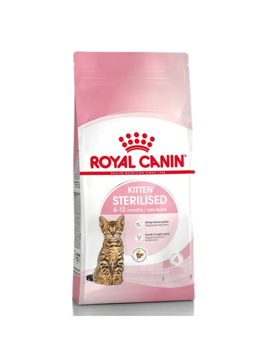 Royal Canin, dry food for sterilized kittens from surgery to 12 months, 3.5 kg ROYAL CANIN Sterilized Kitten is formulated to meet the nutritional needs of sterilized kittens during growth. This food is designed for sterilized kittens aged 6 to 12 months, who are entering a period of significant physical and behavioral changes. Its moderate fat content helps limit weight gain without reducing the protein, calcium, and phosphorus needed for healthy growth. This product also supports the development of a healthy immune system with scientifically proven nutrients such as vitamins C and E. Research shows that these antioxidants stimulate a higher and faster rise in antibody levels after vaccination.