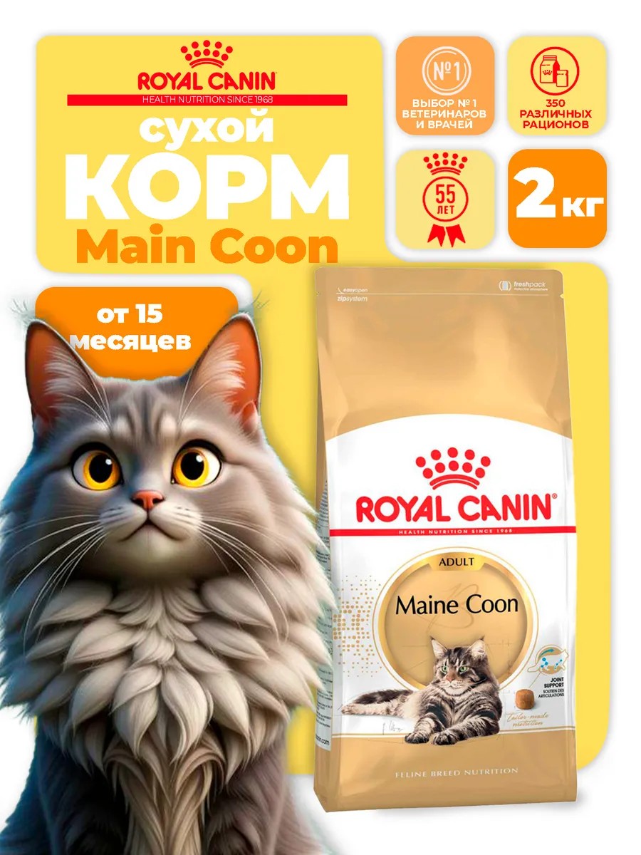 Его формула также способствует поддержанию здоровой кожи и блестящей шерсти, что особенно важно для этой породы. Royal Canin Maine Coon 2 кг - это не просто корм, а забота о вашем любимце, его здоровье и благополучии. Выбирая Royal Canin Maine Coon, вы дарите своему питомцу все самое лучшее! Корм Royal Canin Maine Coon 2 кг предназначен для взрослых кошек породы Мейн Кун, живущих в помещении.