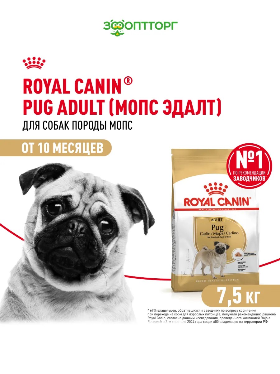 Еда для собак Royal Canin, предназначенный для собак породы мопс старше 10 месяцев, специально разработана с учетом уникальных потребностей вашей взрослой собаки в питательных веществах.