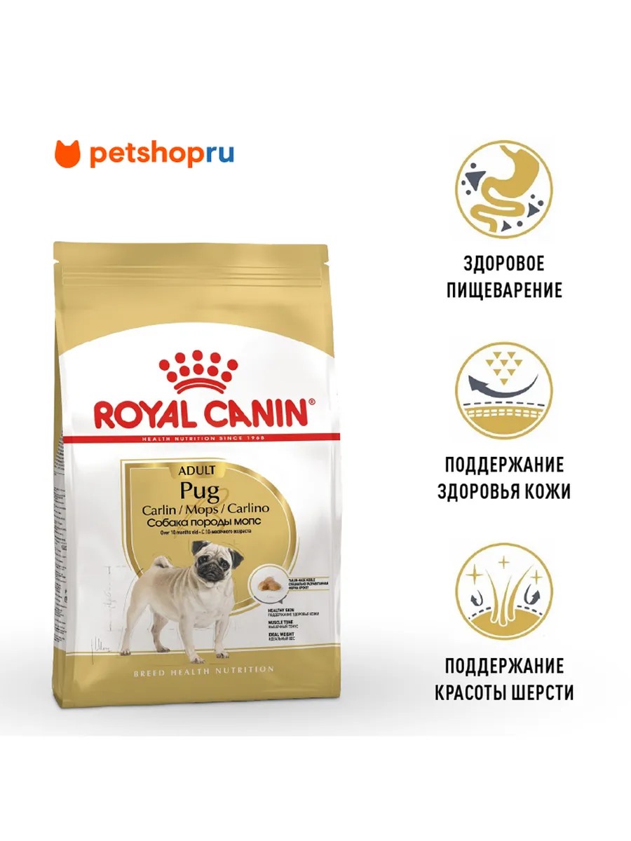 | Назначение корма | для взрослого мопса с 10 мес. |