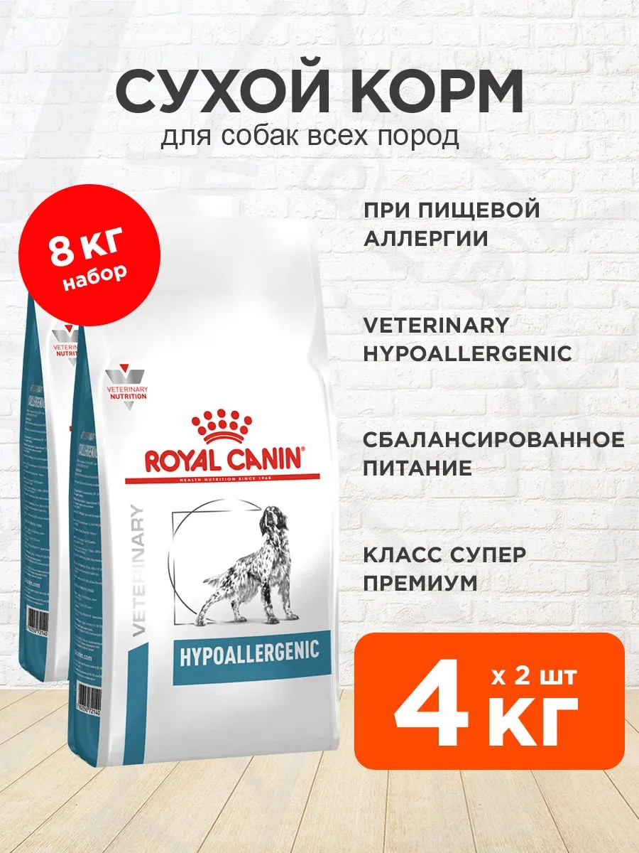 Royal canin Корм сухой Hypoallergenic для собак при аллергии 4 кг 2 шт