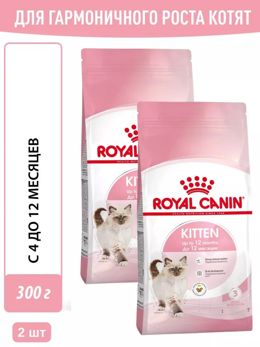 Royal canin Корм сухой Kitten для котят до 12 месяцев 300г 2шт
