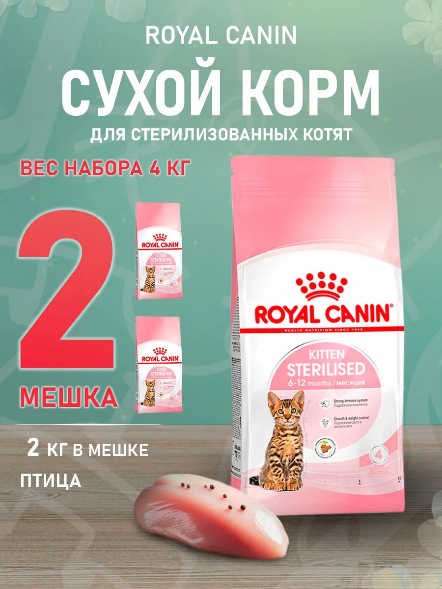 ROYAL CANIN Корм сухой Kitten Sterilised стерилизованных котят 2 кг 2шт