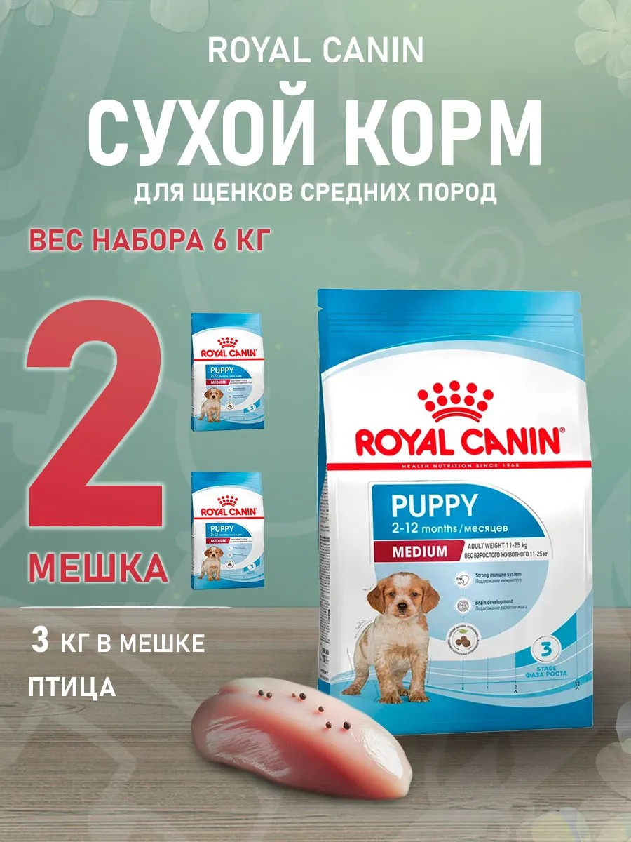 Royal canin Корм сухой Medium Puppy для щенков средних пород 3 кг 2 шт
