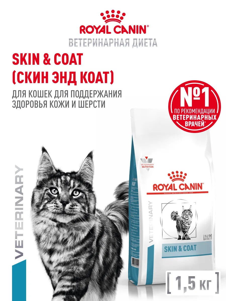 Сухой корм Royal Canin Skin&Coat (Скин Энд Коат) — полнорационный диетический корм для кошек после стерилизации, предназначенный для поддержания защитных функций кожи при дерматозах и чрезмерном выпадении шерсти. Корм с повышенным содержанием незаменимых жирных кислот, помогает поддерживать естественный защитный барьер кожи.