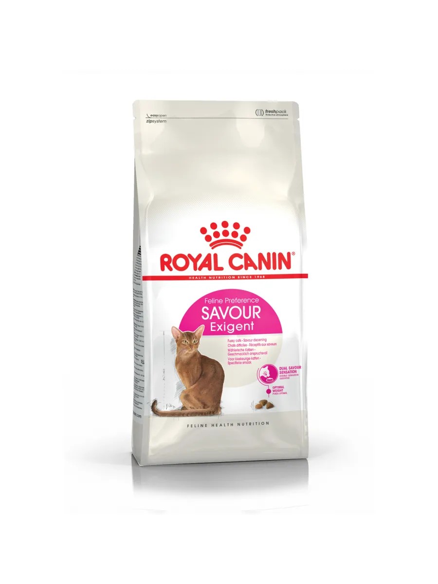 Some cats are picky eaters and often refuse food offered to them. However, this behavior can be corrected by choosing a healthy and nutritious diet that fully meets their individual needs. Many cats are attracted to the variety of food they eat. To satisfy their instinctive preferences, Savour Exigent was developed, containing two complementary kibble types with different compositions and textures. This combination will satisfy even the most discerning appetite. The adapted calorie level of ROYAL CANIN Savour Exigent will help maintain the normal weight of an adult cat. The product is suitable for both indoor and outdoor cats. ROYAL CANIN Savour Exigent stimulates appetite and provides all the nutrients necessary for maintaining health. Benefits: 1) Flavor variety: Some fussy cats are particularly attracted to variety in food and a change in taste sensations. SAVOUR EXIGENT, featuring two kibble types with distinct flavours, shapes and textures, is specially formulated to meet these cats' natural preferences. 2) Ideal Weight: Adapted calorie content to help maintain ideal weight in fussy cats. 3) Individual Preferences: Every cat has its own preferences when it comes to food, whether for flavour profile, flavour variety or protein content. With this in mind, ROYAL CANIN has developed three recipes to satisfy even the pickiest of cats. 4) Urinary Health: Developed to support the normal function of the adult cat's urinary system with a balanced mineral content.