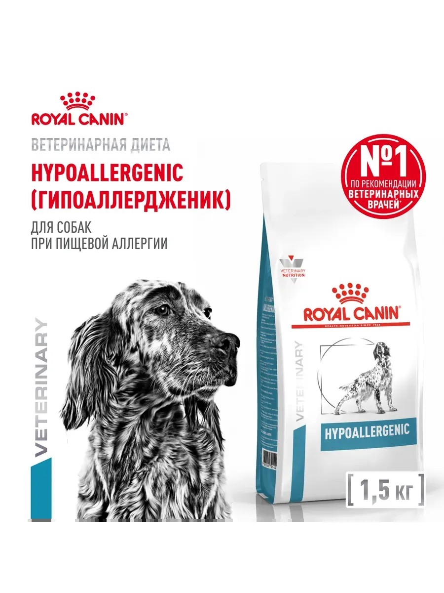 Сухой корм ROYAL CANIN HYPOALLERGENIC (Гипоаллердженик)— полнорационный диетический корм для собак, применяемый при пищевой аллергии или пищевой непереносимости некоторых ингредиентов. Специально отобранные источники белков и углеводов.