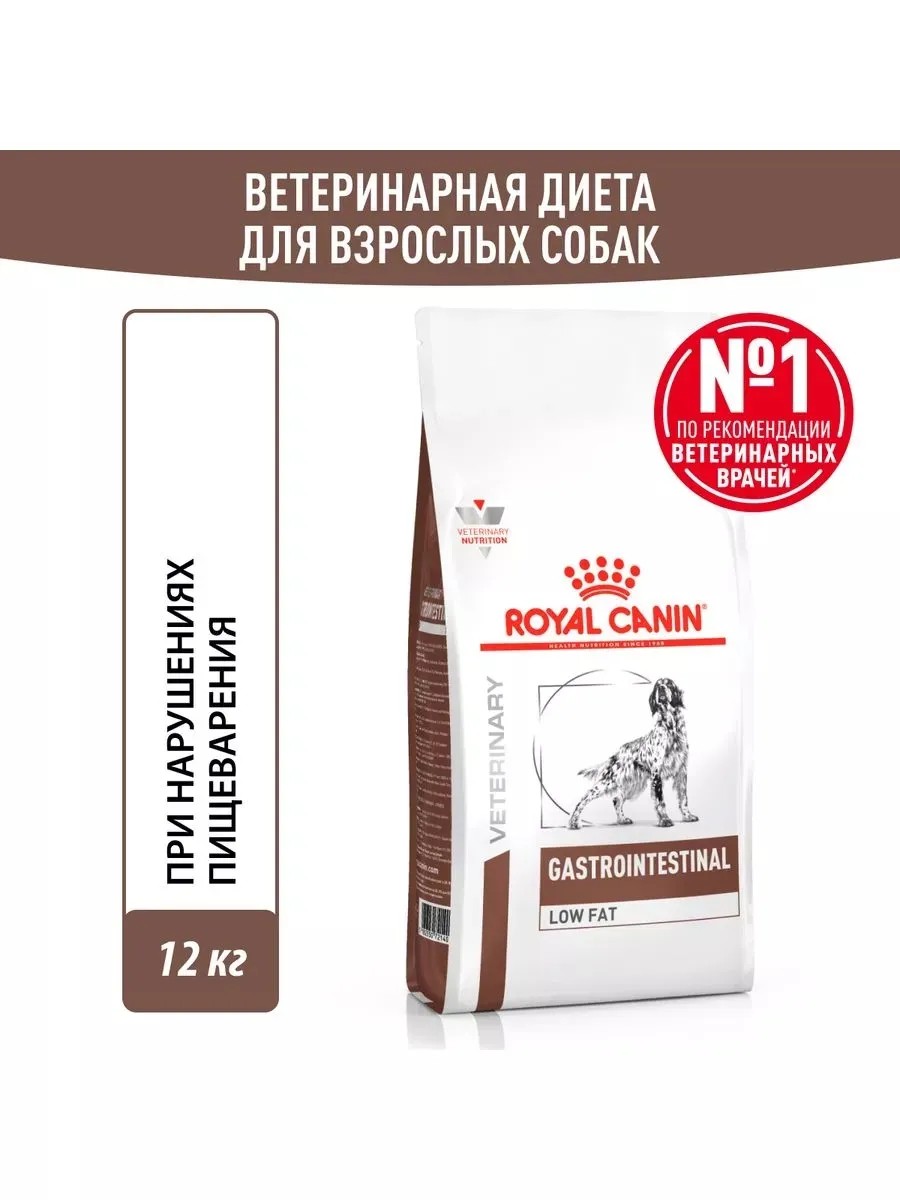 Gastrointestinal Low Fat корм для собак, контроль веса 12кг