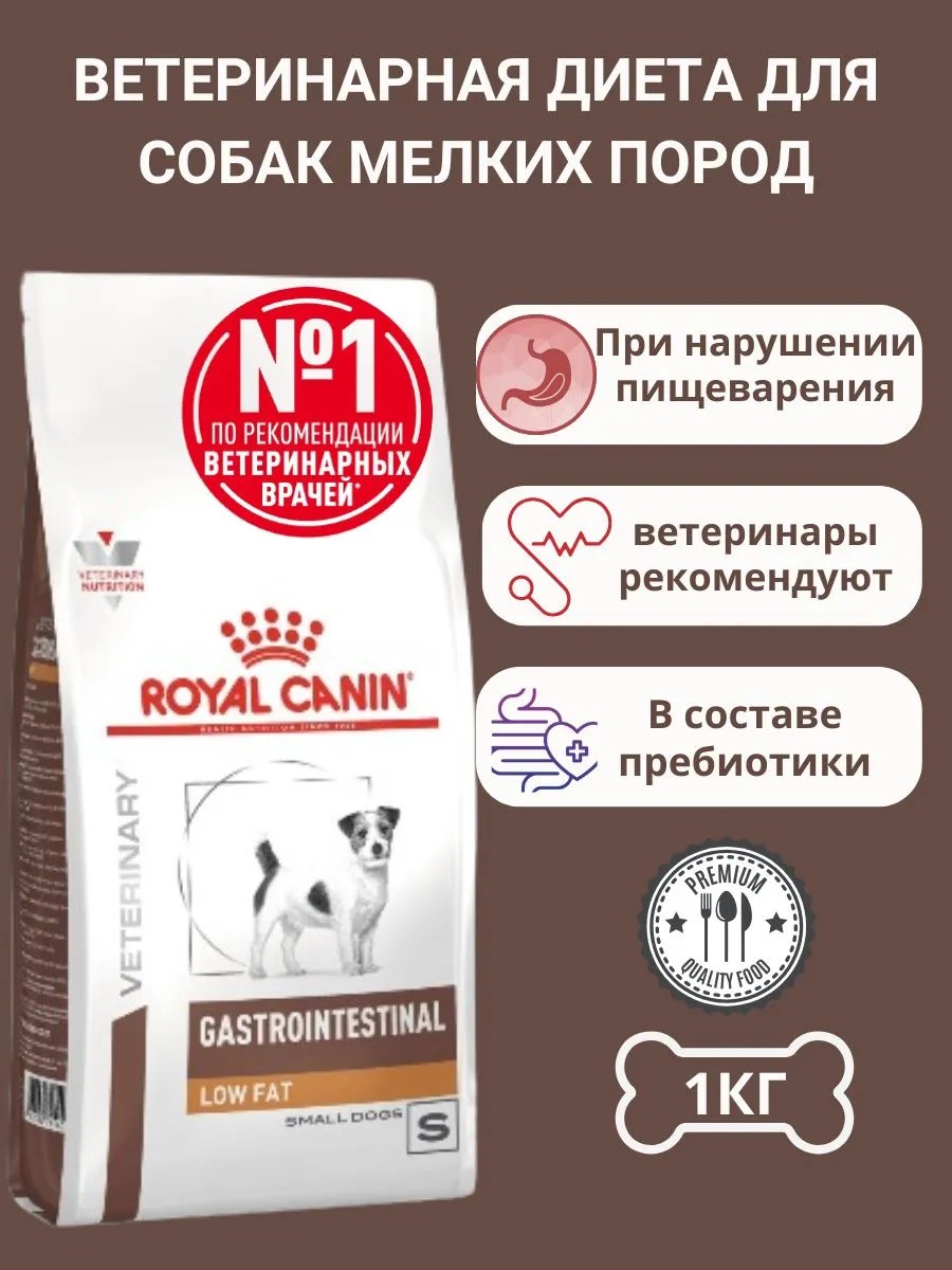 ROYAL CANIN GASTROINTESTINAL LOW FAT SMALL DOGS dry food is a complete dietetic food for dogs with digestive disorders that helps regulate lipid metabolism in hyperlipidemia. This product contains easily digestible ingredients and a low amount of fat.