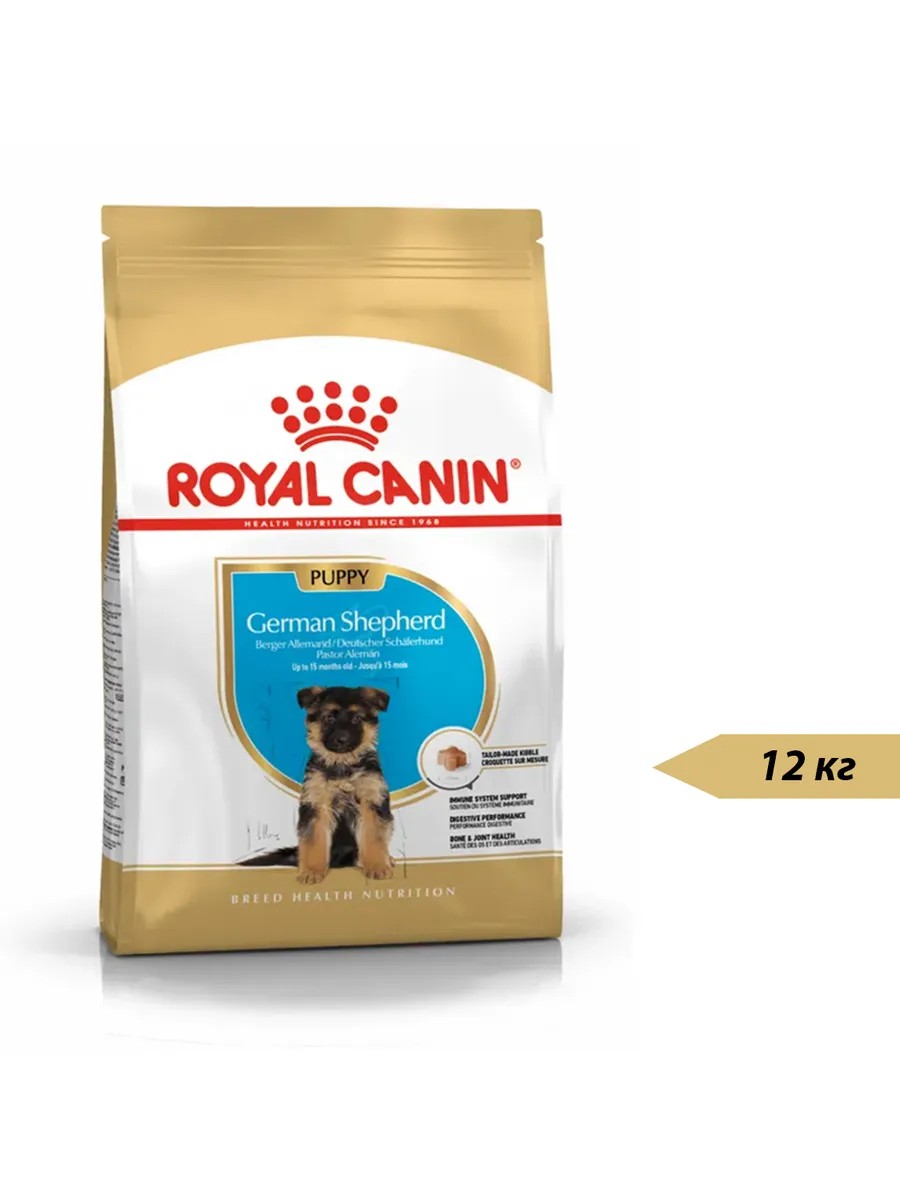 Royal Сanin. Сухой полнорационный корм для щенков Немецких овчарок до 15 месяцев, 12кг. Формула сухого продукта поддерживает развитие иммунной системы, здоровое пищеварение и здоровье костей и суставов. Поскольку иммунная система вашего щенка развивается постепенно, корм Royal Сanin содержит эффективный комплекс антиоксидантов, включая витамин Е, таурин и лютеин, для поддержания естественной защиты в период формирования его иммунной системы.