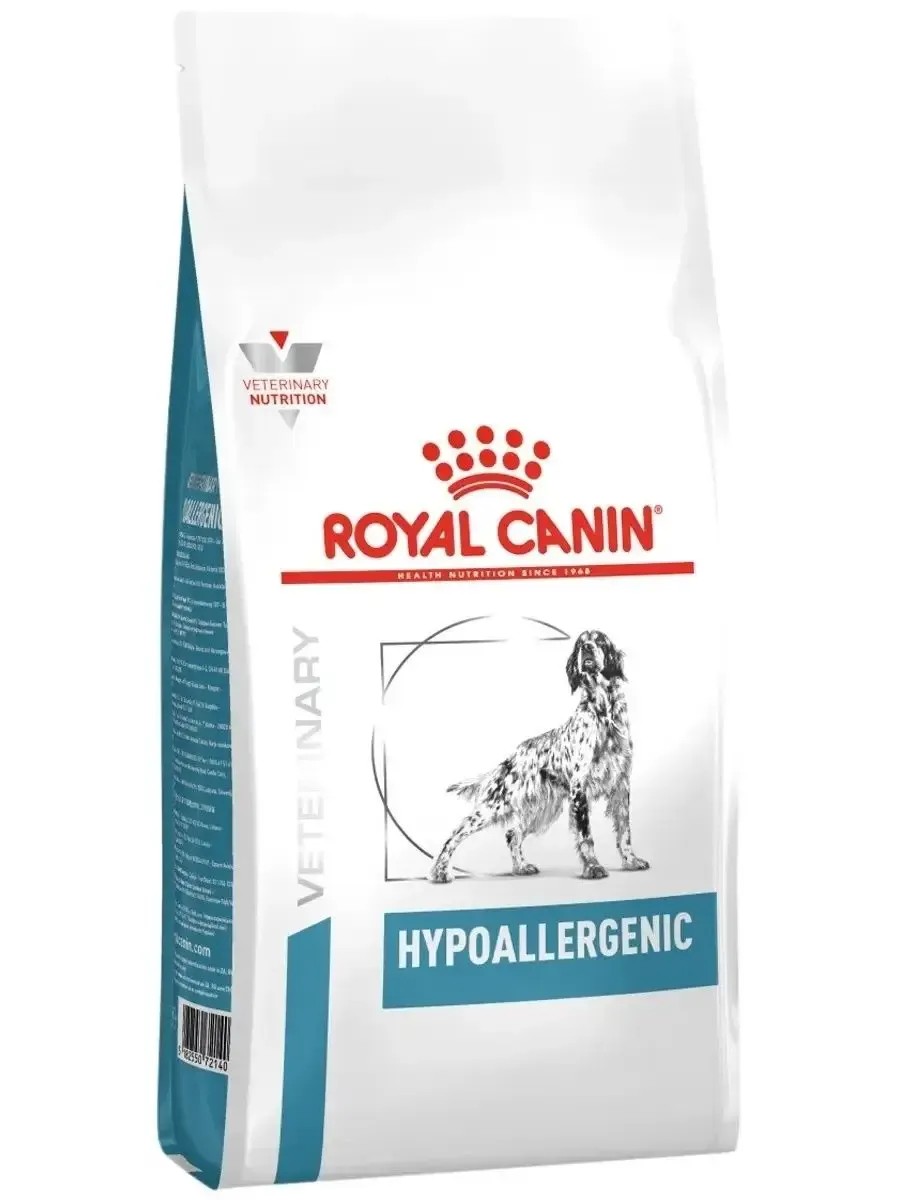 Корм сухой полнорационный диетический для взрослых собак, применяемый при пищевой аллергии или пищевой непереносимости. Ветеринарная диета.* способствует снижению риска развития аллергических реакций благодаря гидролизованным белкам в составе* формула помогает поддерживать естественный защитный барьер кожи* содержит незаменимые Омега-3 жирные кислоты и нутриенты для поддержания здоровья пищеварительной системы и кожи Показания:* Нежелательные реакции на корм (НРК) с дерматологическими и/или гастроэнтерологическими симптомами:br \- постановка диагноза \(элиминационное исследование\) \- диетотерапия* Атопический дерматит собак в сочетании с НРК* Хроническая диарея* Воспалительные заболевания кишечника (ВЗК)* Экзокринная недостаточность поджелудочной железы* Чрезмерный рост бактериальной флоры в тонком кишечнике Противопоказания:* Панкреатит* Лактация, рост РЕКОМЕНДАЦИЯ: решение о продолжительности курса диетотерапии или смене диеты можно принимать только по рекомендации ветеринарного врача. При подозрении на пищевую аллергию или пищевую непереносимость следует перевести собаку на специальную диету без соблюдения переходного периода. Диета Hypoallergenic может применяться на протяжении всей жизни животного. Рекомендуется разделять дневную порцию корма на два приема.ИНГРЕДИЕНТЫ: злаки, гидролизат изолята белка сои, животные жиры, растительная клетчатка, минеральные вещества, гидролизат белков животного происхождения (вкусоароматические добавки), соевое масло, гидролизат печени птицы, рыбий жир, фруктоолигосахариды, масло огуречника аптечного, экстракт бархатцев прямостоячих (источник лютеина).