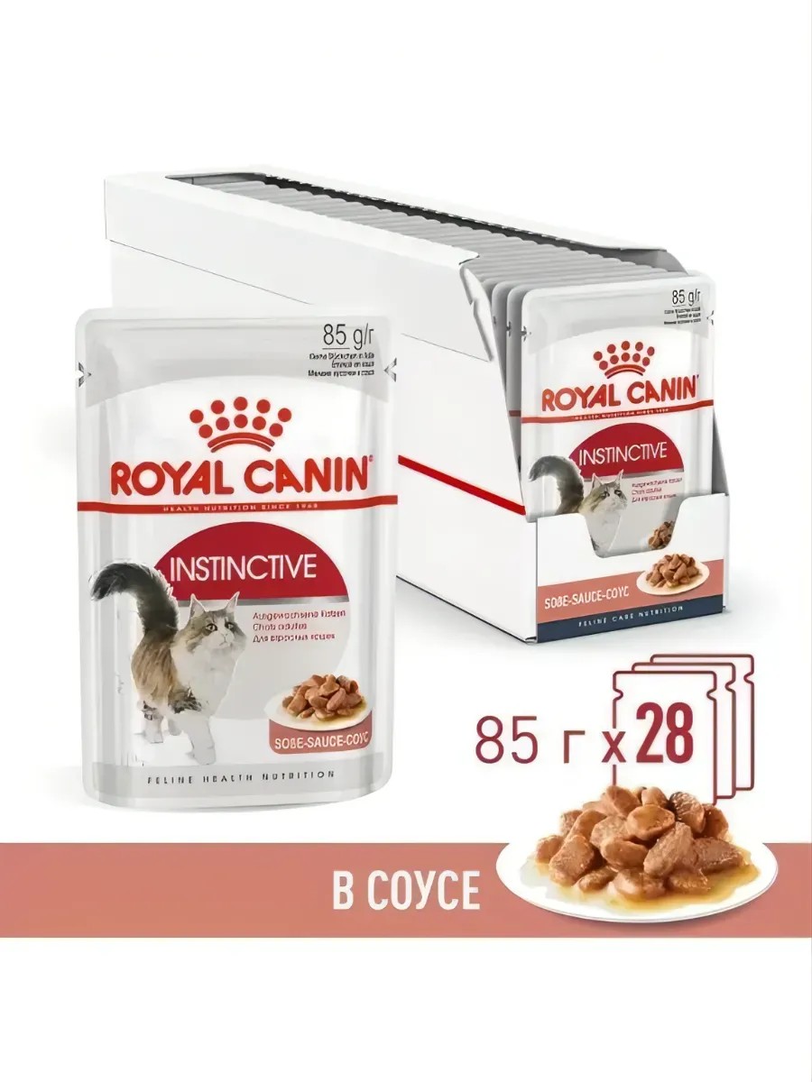 Инстинктив в соусе: влажный корм для взрослых кошек в возрасте от 1 года до 7 лет. Особый макронутриентный профиль продуктов Royal Canin обеспечивает их высочайшую вкусовую привлекательность для кошек на долгое время. Разработано с учетом инстинктивных предпочтений взрослых кошек, способствует сохранению здорового веса, оптимальный для взрослых кошек макронутриентный профиль продукта, поддерживает естественный рН мочи, 100% полнорационное и сбалансированное питание.