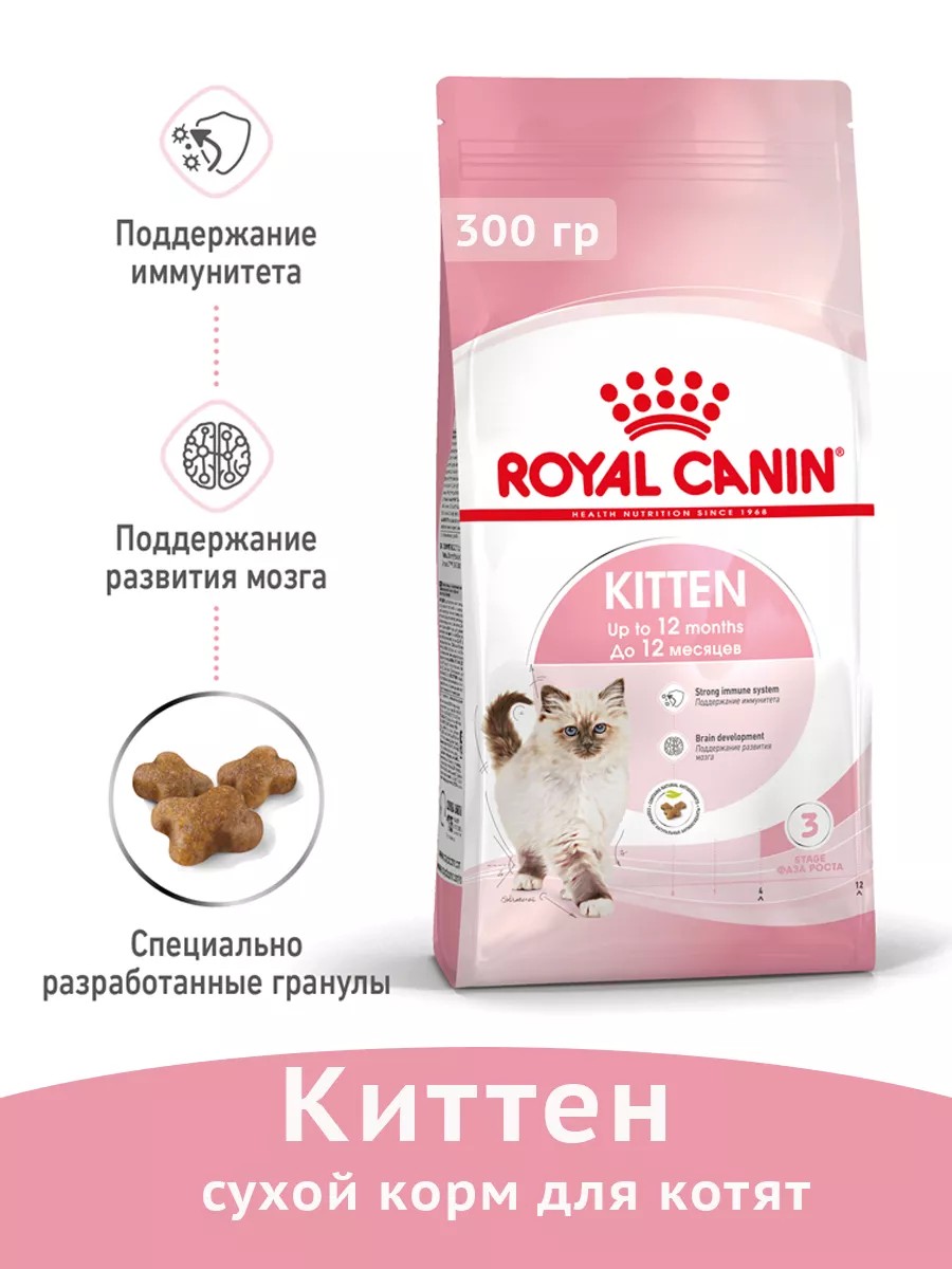 С 4-месячного возраста у котят изменяются темпы роста, им требуется больше энергии для поддержания развития костей и мышц. Формула ROYAL CANIN Kitten (Киттен) содержит адаптированные уровни белков, витаминов и минералов, которые помогают поддерживать гармоничный рост и развитие котенка. По мере взросления в жизни котенка происходят большие перемены: он переезжает в новую семью, знакомится с новой обстановкой и членами семьи. В течение этого важнейшего периода жизни также продолжает развиваться и его иммунная система, которая постепенно заменяет защиту, обеспеченную материнским молоком.