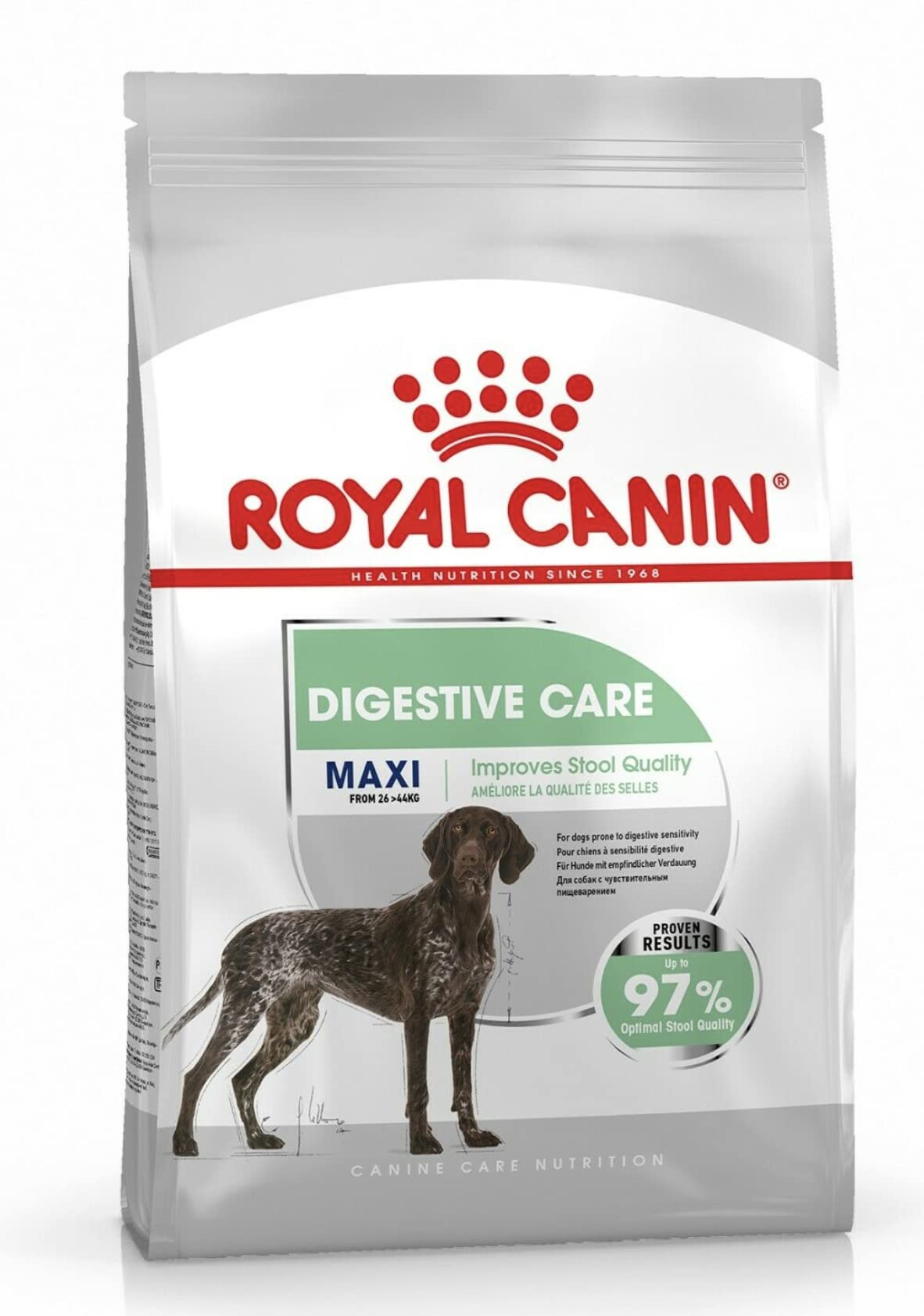 Royal Canin Maxi Digestive Care Adult Dry Dog Food 12kg INDICATIONS digestive sensitivity DIRECTIONS For adult and mature large breed dogs (from 26 to 44 kg), Over 15 months old, Dogs prone to digestive sensitivity See more