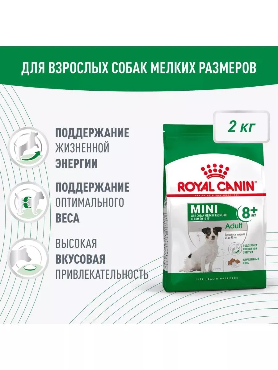 Royal Canin Mini Adult 8+ - это высоковкусный корм для собак мелких пород, специально разработанный для питомцев старше 8 лет весом до 10 кг. Что делает этот корм особенным? Прежде всего, его уникальная формула, учитывающая потребности стареющих собак.