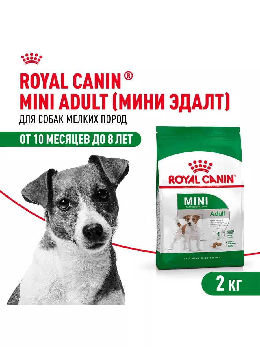Корм сухой полнорационный для взрослых собак мелких размеров (весом от 1 до 10 кг) в возрасте 10 месяцев и старше MINI ADULT (МИНИ ЭДАЛТ) ROYAL CANIN, подходящий для собак мелких пород в возрасте от 10 месяцев до 8 лет, специально разработан с учетом потребностей вашей собаки в питательных веществах.