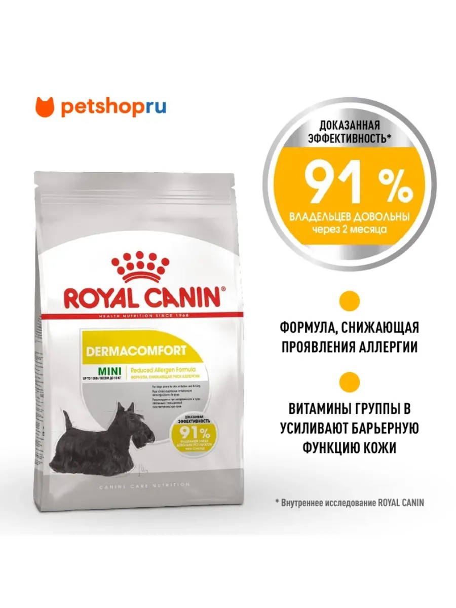 Формула с пониженным содержанием потенциально аллергенных продуктов Применение Dermacomfort способствует здоровью кожи, поскольку в его составе ограничено количество источников белка, которые считаются потенциальными аллергенами у собак. Используемые белки были отобраны по признаку высокой степени их усвояемости. Dermacomfort помогает уменьшить раздражение кожи и зуд.