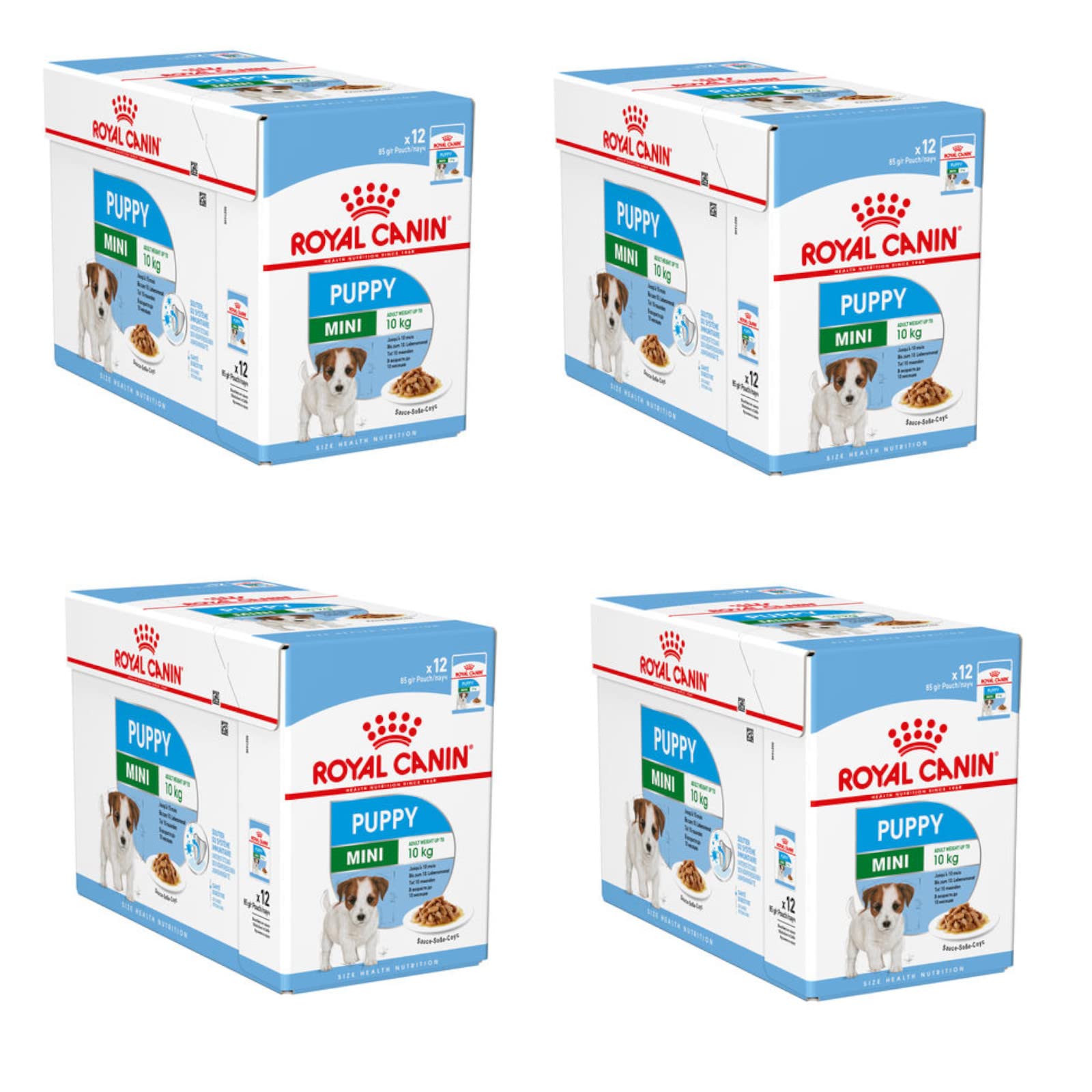 Royal Canin Mini Puppy | 4er Pack | 4 x 12 x 85 g | Nassfutter f r kleine Hundewelpen | Bis zum 10. Lebensmonat | Feine St ckchen in So?e | Weiche Textur f r die Milchz hne