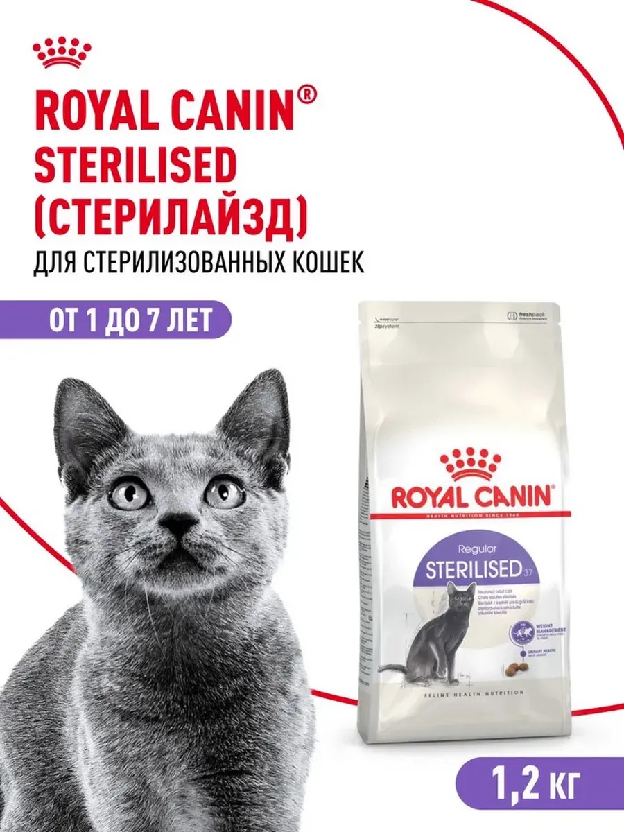 Корм сухой полнорационный для кошек - Специально для стерилизованных кошек в возрасте от 1 года до 7 лет STERILISED 37 (СТЕРИЛАЙЗД 37) ROYAL CANIN, подходящий для стерилизованных кошек в возрасте от 1 года до 7 лет, специально разработан с учетом потребностей вашей кошки в питательных веществах