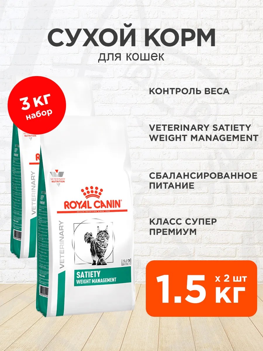 Сухой корм royal canin satiety weight management (сэтайети вейт менеджмент) - полнорационный диетический корм для взрослых кошек, рекомендуемый для снижения веса.