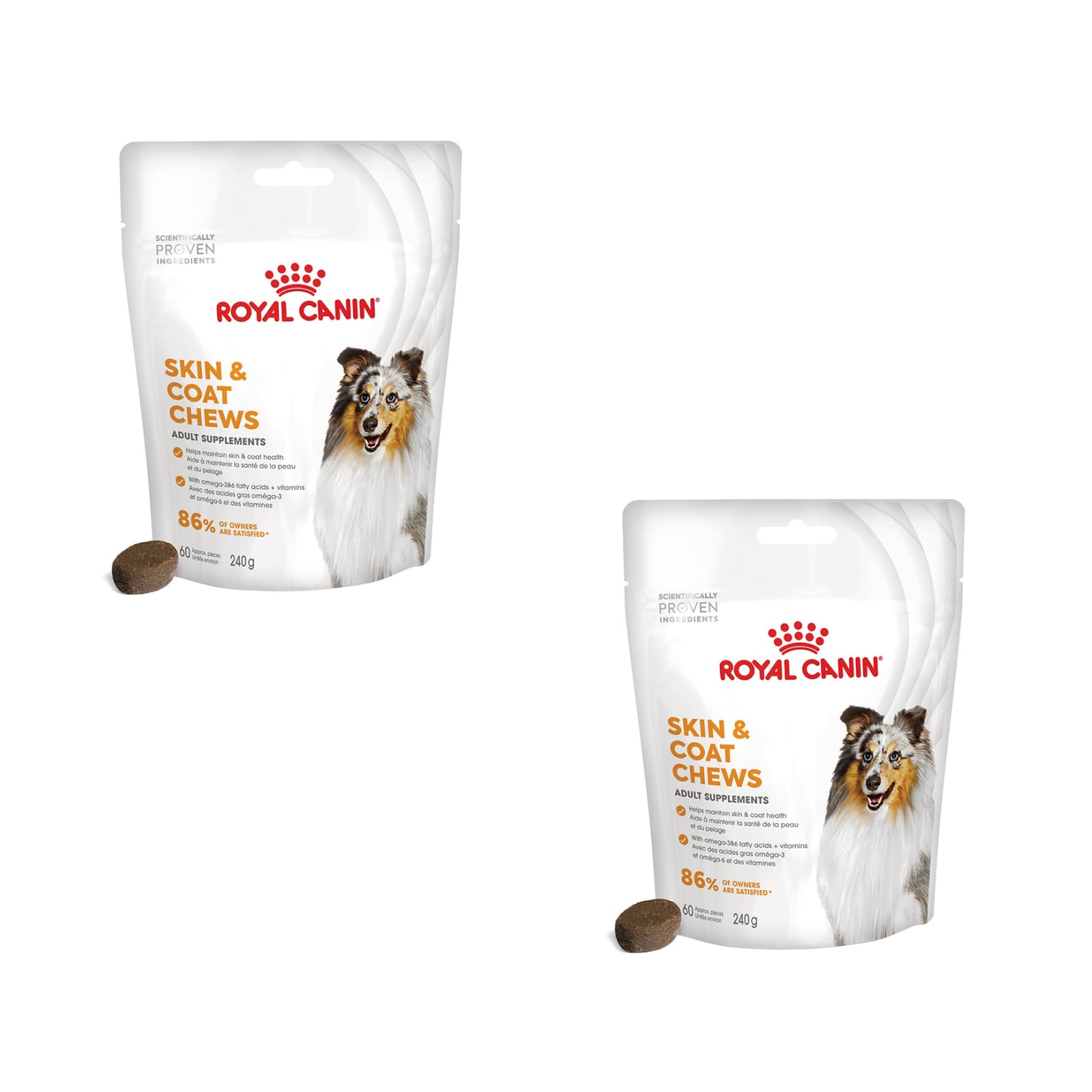 Royal Canin Skin Coat Chews | Double Pack | 2 x 240 g | Snacks for Adults Dogs of All Sizes & Breeds | In Resealable Bag | Developing with Veterinarians | With Poultry Protein