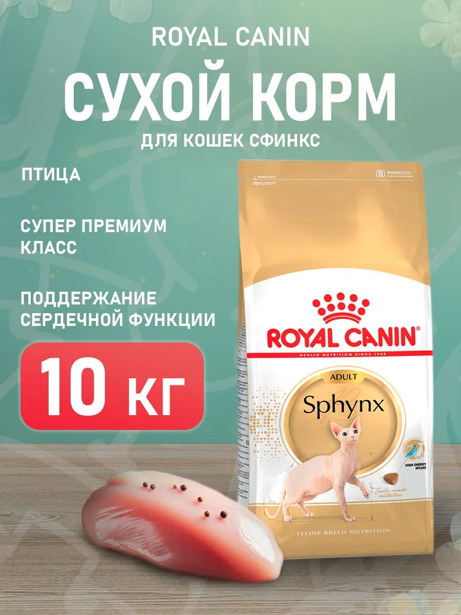 Полнорационный сухой корм роял канин для кошек породы сфинкс старше 12 месяцев.