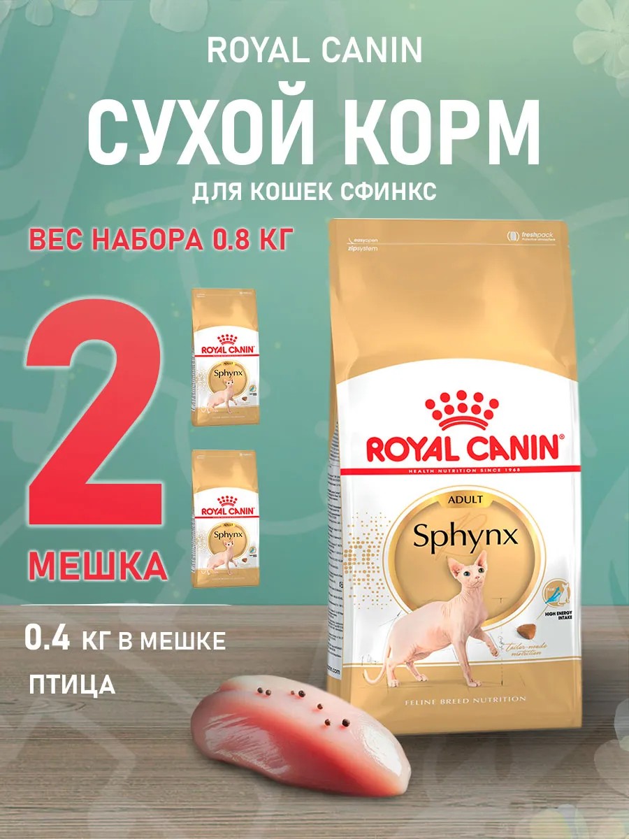 Royal canin Корм сухой Sphynx Adult для кошек Сфинкс 0,4 кг 2 шт