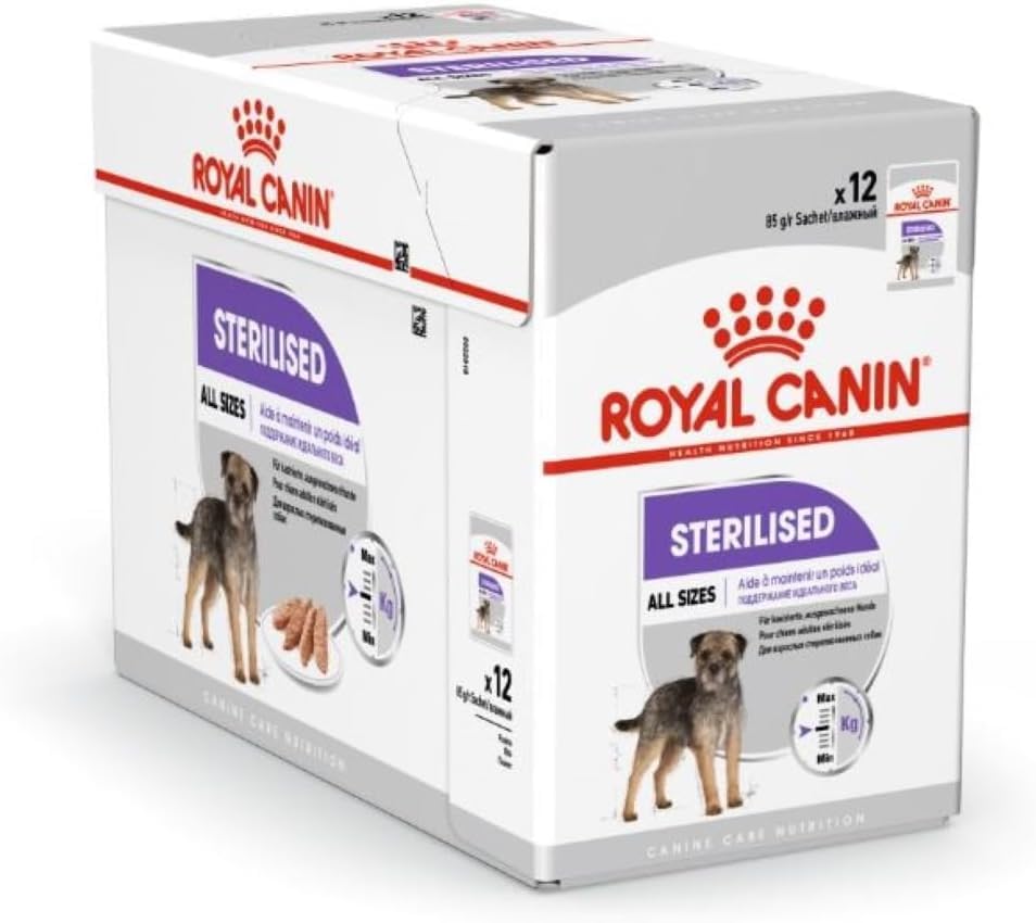 Maintaining an ideal body condition (4 or 5/9 on a body condition score chart) contributes to good health, more vitality and better all-round quality of life. But after neutering, you may notice a change in your dog with an increased appetite and reduced energy needs, placing your dog at risk of weight gain. ROYAL CANIN Sterilised contains complete and tailored nutrition helps neutered dogs to maintain an ideal bodyweight and condition by providing a balanced formula of protein and fat to help limit calorie intake. ROYAL CANIN Sterilised is available as dry kibble and loaf in pouch formats. Providing complete and balanced nutrition when fed individually or in combination. Please follow the feeding guidelines based on your dog’s ideal adult bodyweight; mixed feeding and individual guides available. Suitable for neutered adult dogs of all sizes to help maintain an ideal weight. INGREDIENTS As per listing DIRECTIONS Use as required See more