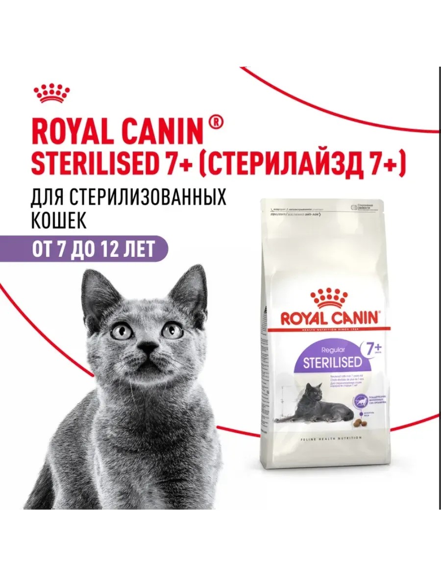 Корм сухой полнорационный сбалансированный для стерилизованных кошек (в возрасте от 7 до 12 лет) STERILISED 7+ (СТЕРИЛАЙЗД 7+) ROYAL CANIN, подходящий для стерилизованных кошек в возрасте от 7 до 12 лет, специально разработан с учетом потребностей вашей кошки в питательных веществах.