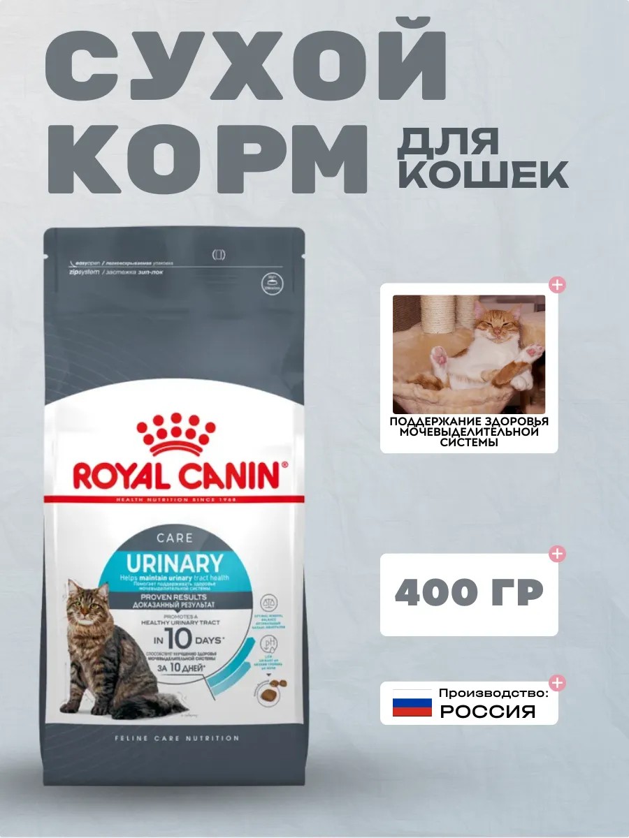 Уринари кэа: сухой корм для профилактики образования мочевых камней. ROYAL CANIN URINARY CARE (Уринари кэа) поддерживает работу мочевыделительной системы здоровых кошек зрелого возраста (от 1 до 7 лет), что подтверждается результатами научных исследований. Особая формула URINARY CARE (Уринари кэа) с ограниченным количеством микроэлементов, формирующих кристаллы и камни, удовлетворяет потребности здорового животного, сокращая вероятность образования кристаллов и камней. Этот рацион подходит здоровым взрослым кошкам , не больных в настоящий момент и не имевшим в прошлом болезней мочевыделительной системы. Продукт не заменяет лечебную диету, рекомендованную вашим ветеринарным врачом.Способствует здоровью мочевыделительной системыДоказанное действие: в 2 раза более эффективен для улучшения работы нижних мочевыводящих путей**В сравнении с применением обычных кормов для кошек (по данным внутреннего исследования Royal Canin, 2014).Доказана эффективность, в частности, против образования струвитных камней.ROYAL CANIN Urinary Care (Уринари кэа) – точно сбалансированное диетологическое решение, поддерживающее здоровье мочевыводящих путей кошки. ROYAL CANINUrinary Care – уникальная формула, которая снижает концентрацию мочи, регулирует баланс минеральных веществ и поддерживает низкий уровень pH мочи, что способствует профилактики камней струвитного типа.