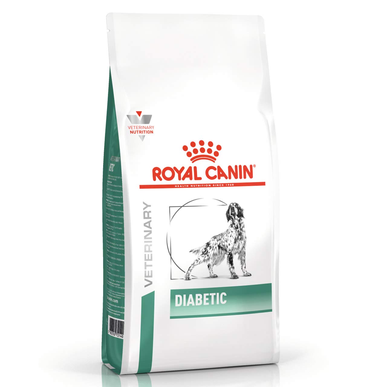 DIABETIC is a complete dietetic feed for dogs formulated to regulate glucose supply (Diabetes Mellitus). This feed contains a low level of rapid glucosereleg carbohydrates. INDICATIONS Diabetes Mellitus in dogs INGREDIENTS COMPOSITION: dehydrated poultry protein, barley, wheat gluten*, maize gluten, vegetable fibres, animal fats, tapioca, beet pulp, hydrolysed animal proteins, fish oil, psyllium husks and seeds, fructo-oligo-saccharides, minerals, marigold extract (source of lutein). ADDITIVES (per kg): Nutritional additives: Vitamin A: 15900 IU, Vitamin D3: 1000 IU, E1 (Iron): 30 mg, E2 (Iodine): 3 mg, E4 (Copper): 4 mg, E5 (Manganese): 39 mg, E6 (Zinc): 118 mg, E8 (Selenium): 0.03 mg - Preservatives - Antioxidants. ANALYTICAL CONSTITUENTS: Protein: 37% - Fat content: 12% - Crude ash: 5.2% - Crude fibres: 6.4% - Starch: 19.1% - Essential fatty acids: 2.76% - Total sugars: 1.5% *L.I.P.: protein selected for its very high assimilation. DIRECTIONS Feed your adult dog with this dry food according to its weight and activity level. As this is a diet food for dogs with diabetes mellitus, please consult your veterinarian for the exact portion size and feeding frequency. Store the food in a cool, dry place to maintain freshness. BOX CONTAINS Each order comes with 1 x Royal Canin Veterinary Diet Canine Diabetic Dry Food 12KG See more
