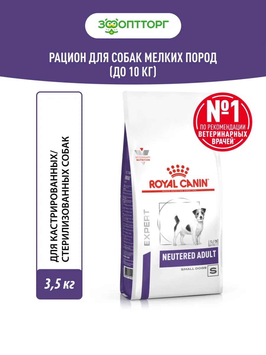 Сухой корм Royal Canin Neutered Adult Small Dogs подходит для стерилизованных и кастрированных собак весом до 10 кг, склонных к избыточному весу и образованию зубного камня и зубного налета.
