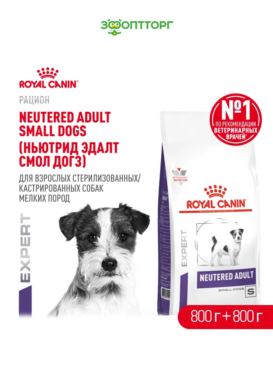 | Комплектация | Royal Canin Neutered Adult Small Dog корм для кастрированных собак мелких пород Диетический, 800 г упаковка 2 шт |