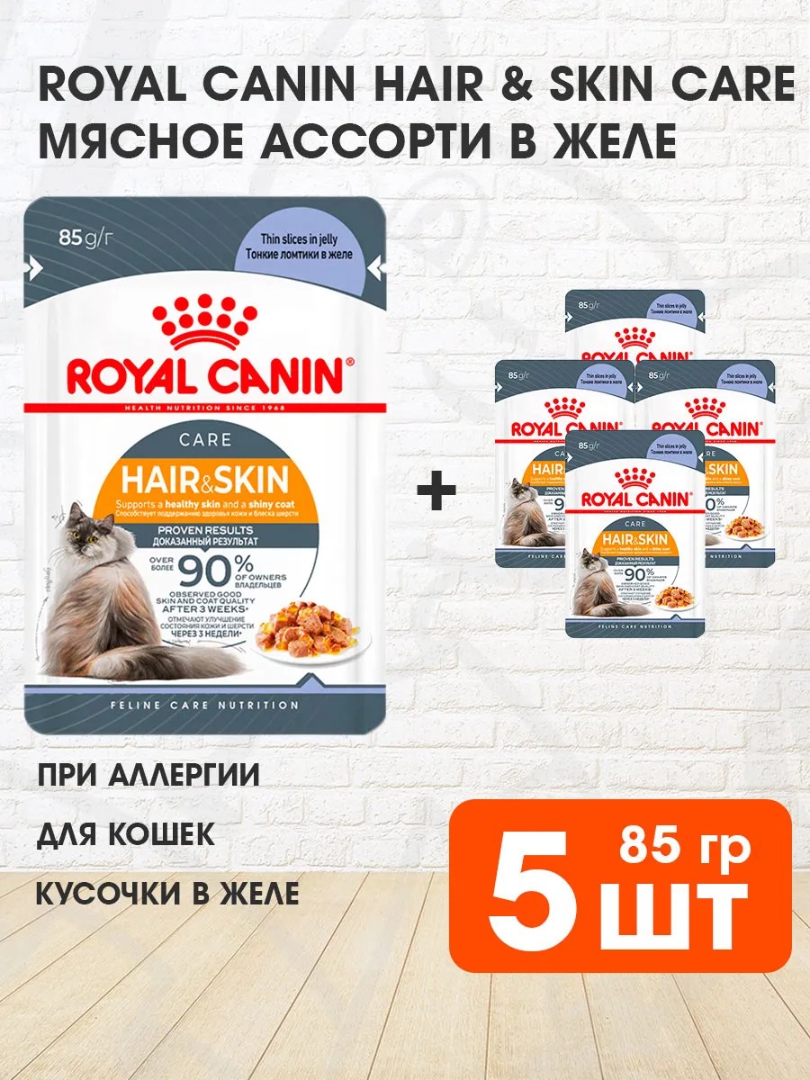 Royal canin Корм влажный Hair & Skin Care для кошек в желе 85 г 5 шт