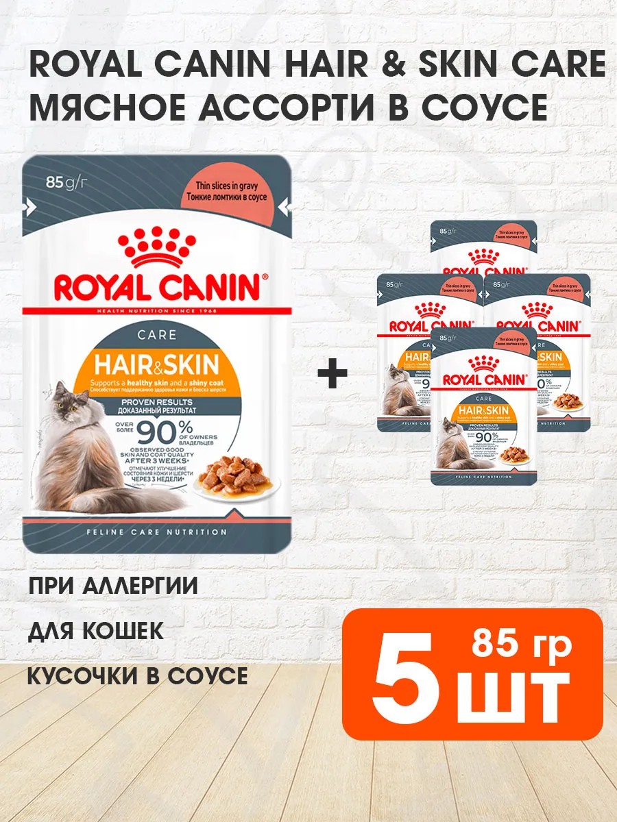 Royal canin Корм влажный Hair & Skin Care для кошек в соусе 85 г 5 шт