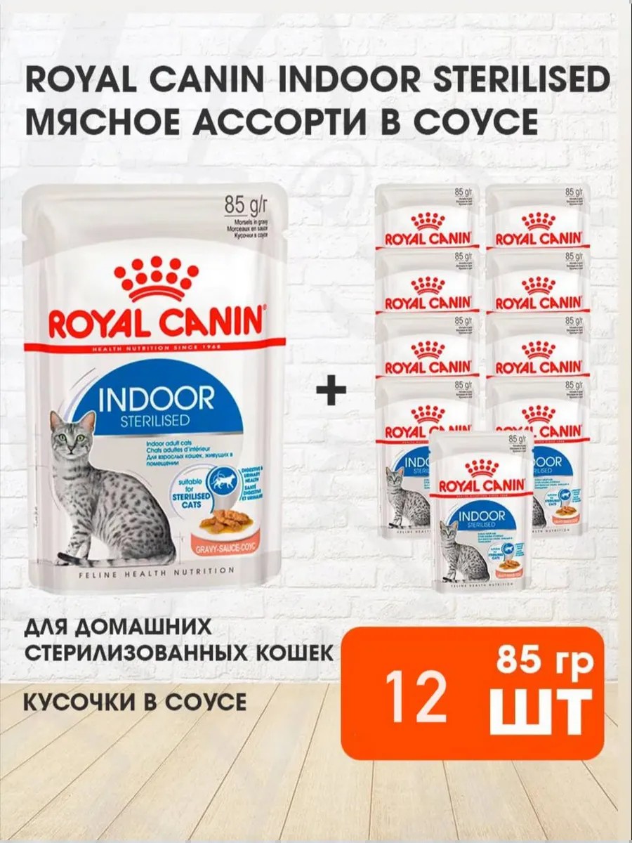 Royal canin Корм влажный Indoor Sterilised для кошек соус 85 г 12 шт