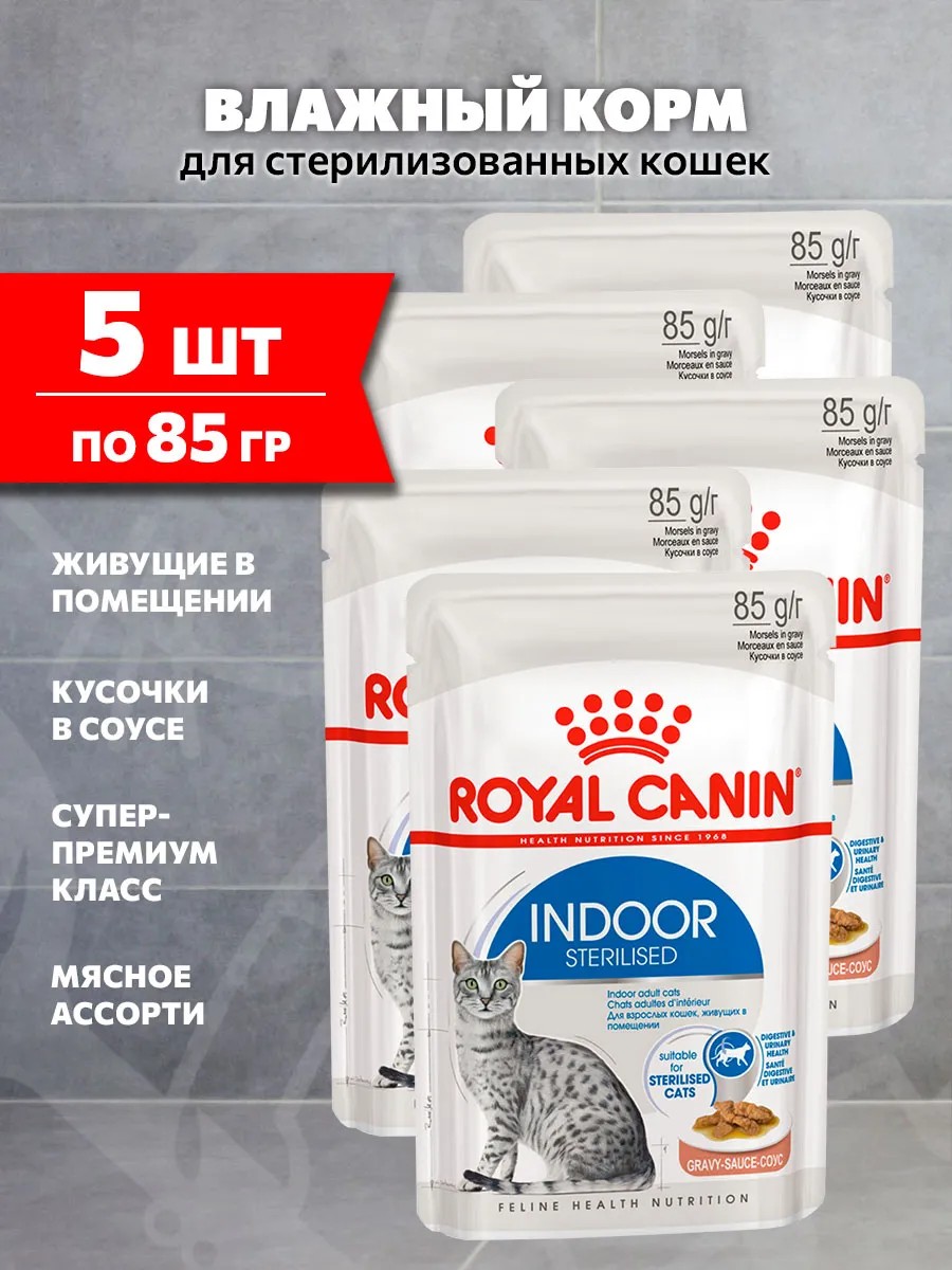 Royal canin Корм влажный Indoor Sterilised для кошек соус 85 г 5 шт