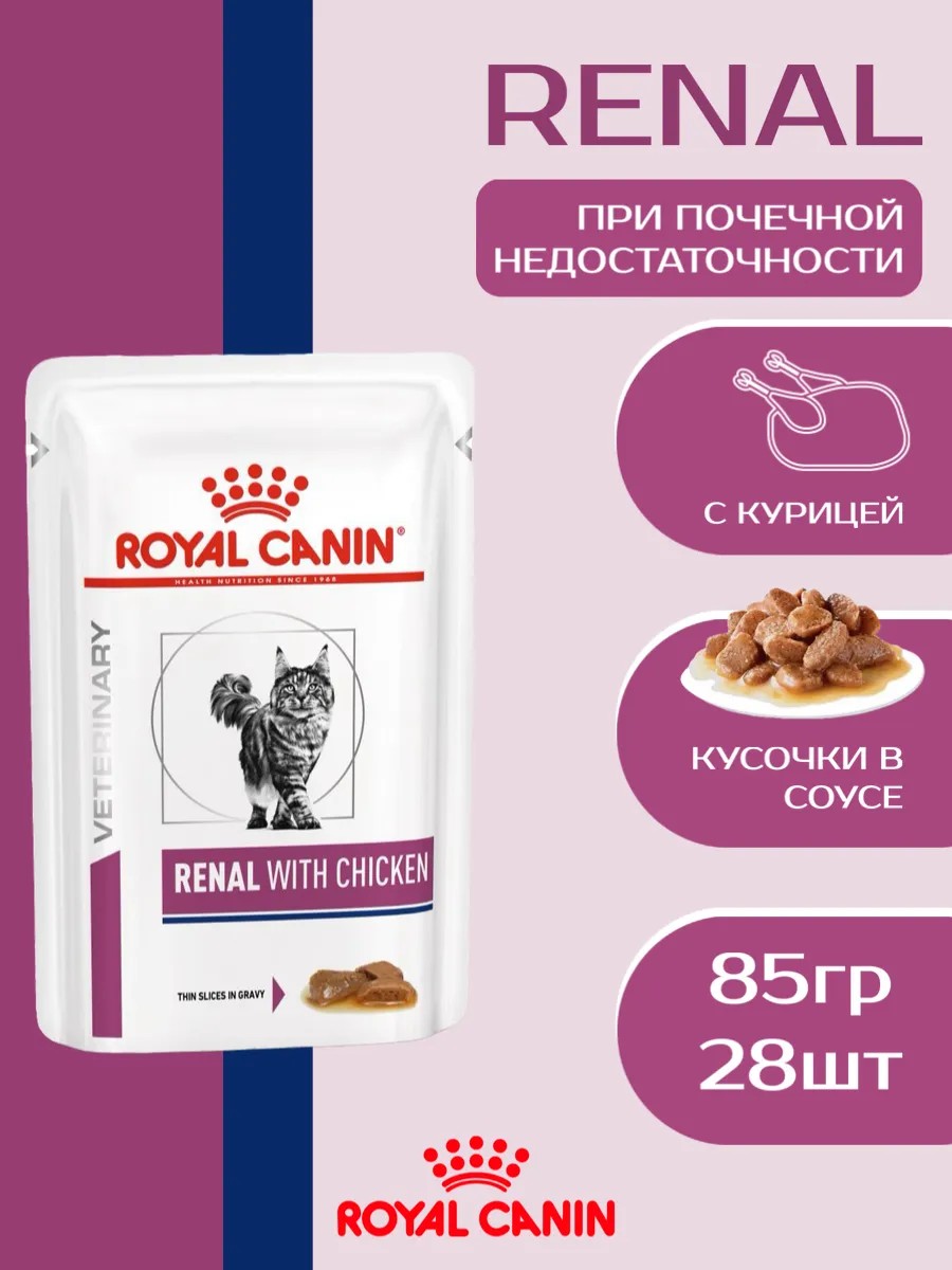 Royal canin Влажный корм (Ренал для кошек) Renal,с курицей, 85гр х 28шт