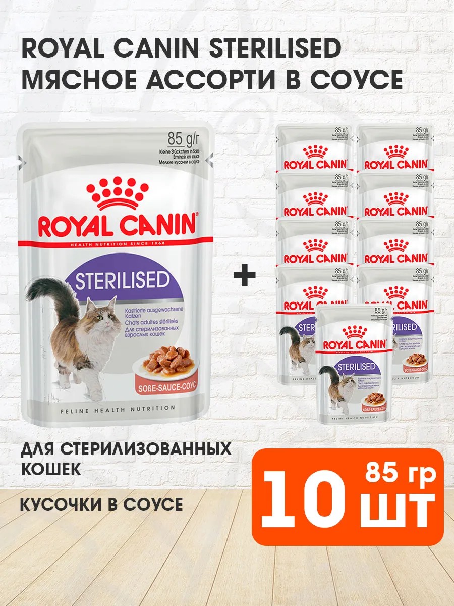 Royal canin Корм влажный Sterilised стерилизованных кошек соусе 85г 10шт