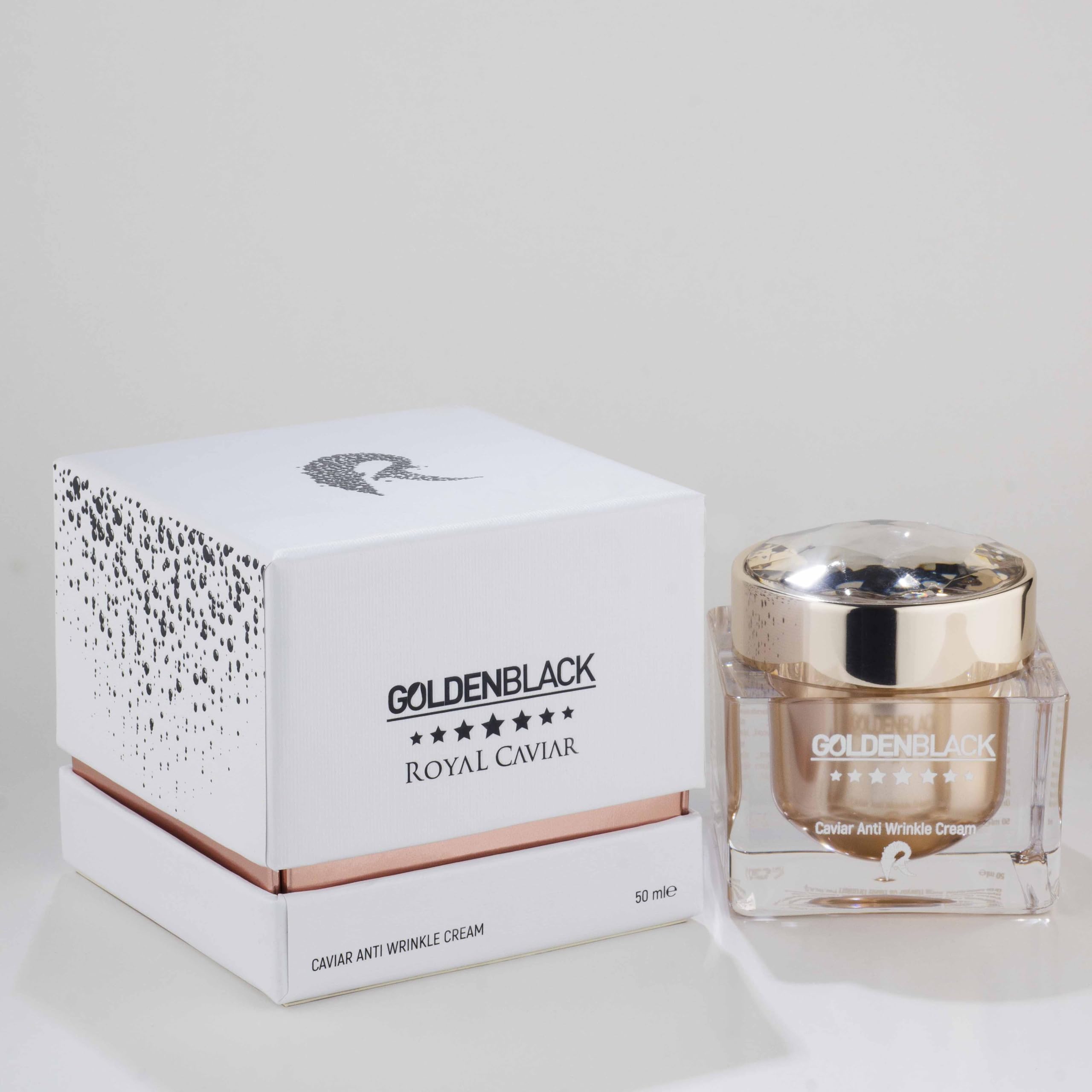 Discover GOLDEN BLACK Royal Caviar Anti-Wrinkle Cream, a luxurious formula enriched with Beluga caviar. This precious 50ml treatment offers a unique sensory experience with its sumptuous texture and elegant packaging. The cream combines premium ingredients to help visibly reduce the appearance of wrinkles and fine lines. Its refined glass jar, topped with a gold lid, reflects the premium quality of this cream. Perfect for a sophisticated beauty routine, it is applied morning and evening to a perfectly cleansed face and neck. The formula works to help maintain skin hydration while targeting the visible signs of aging. A truly high-end skincare experience that combines luxury and effectiveness to enhance your skin every day. DIRECTIONS FOR USE Adults SAFETY WARNING Avoid contact with eyes See more